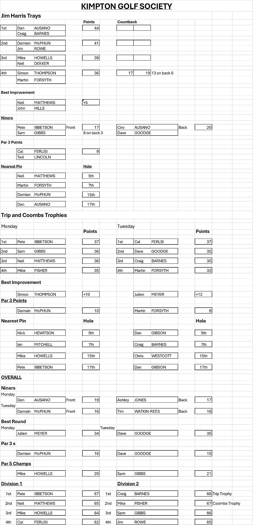 Congratulations to the winners of the Trophies and other prizes (see below).